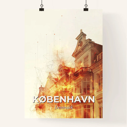 Copenhagen Skyline City Composite Art Poster - A building with a fire in the background