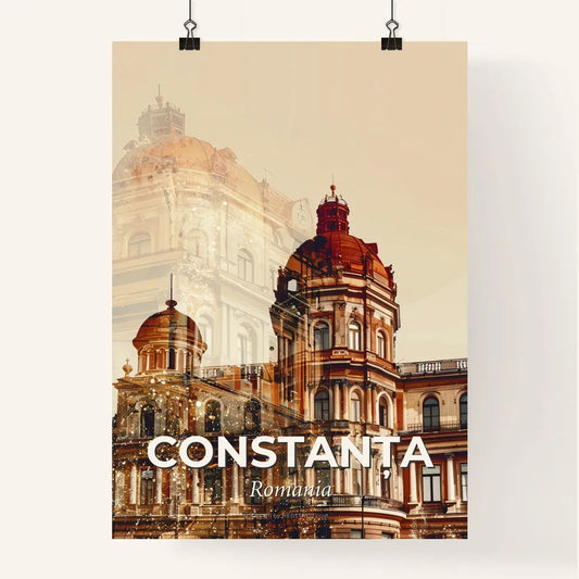 Constanța Skyline Double Exposure City Icons Poster - A large building with a dome on top