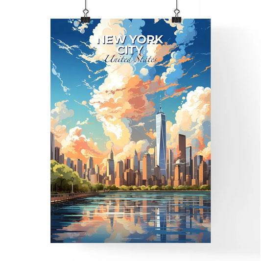 A Poster of New York City Skyline - A City Skyline With A Body Of Water