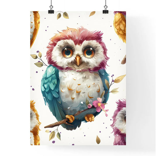 Whimsical Baby Owl Pattern: Cute pastel owls with flowers, glasses, and bows on white. High-res, colorful cartoon design for childrens wallpaper.
