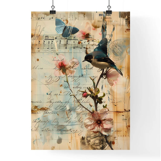 Antique Vintage Script Letters and Stamps Collage: Vibrant Painting with Ephemera Decoupage, Postcards, Music Sheets - Shabby Chic Style