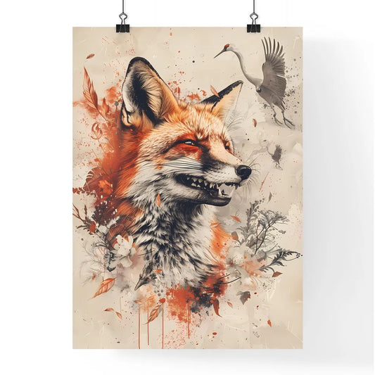 Enchanted Watercolor Fox and Crane: Sublime Macabre Art in the Style of Mexican and American Cultures