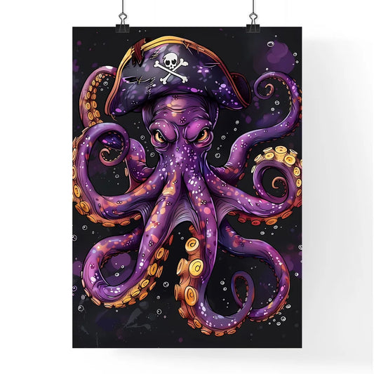 Purple Pirate Octopus: Vibrant Cartoon Painting with Artistic Focus, Featuring Pirate Hat