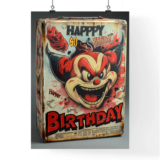 Vintage 1980s Horror Movie Advertising: Happy Birthday Utopian Packaging with Retro Comic Book Style Illustrations and Pop Culture Icons