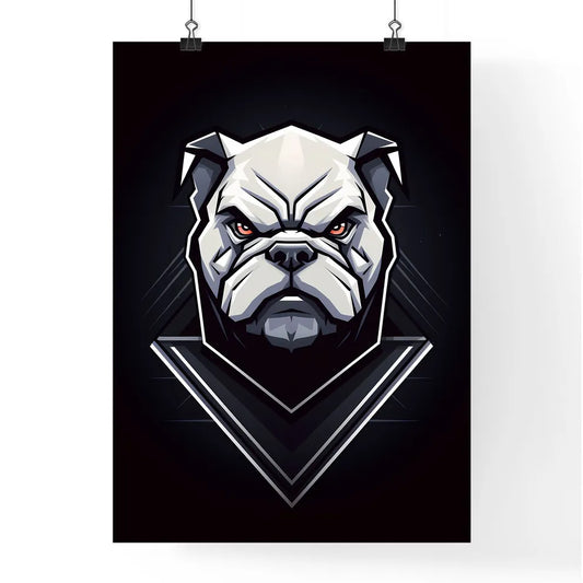 Vibrant Painting Bulldog Mascot Logo Thick Bold Black White Lines Red Eyes Clean White