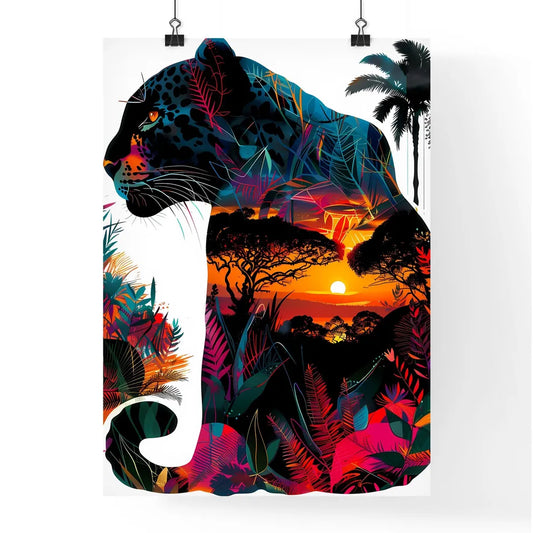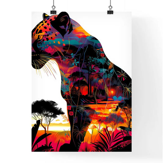 Vibrant Pop Art Panther Silhouette with Double Exposure of African Savannah