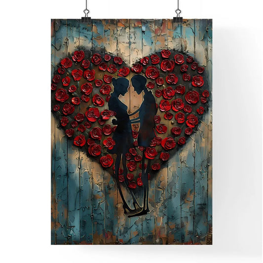 Vibrant Bohemian Heart Painting with Pop Art Skeletons and Botanical Elements in Blue and Red, Inspired by Frazetta and Wrightson