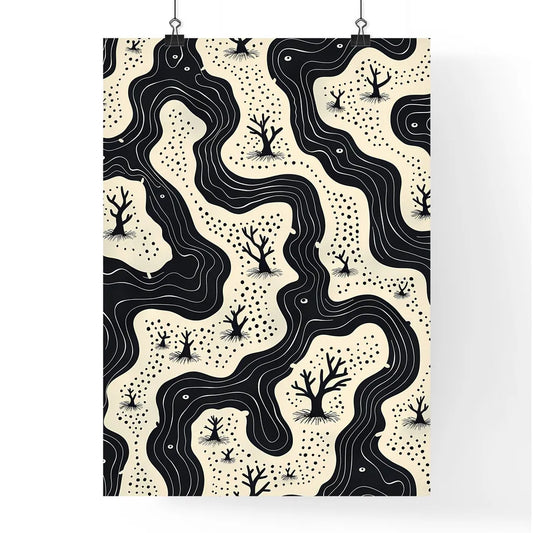 Retro Organic Trees Pattern: Black and White Colorful Abstract Art Painting
