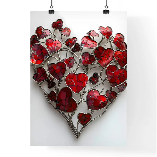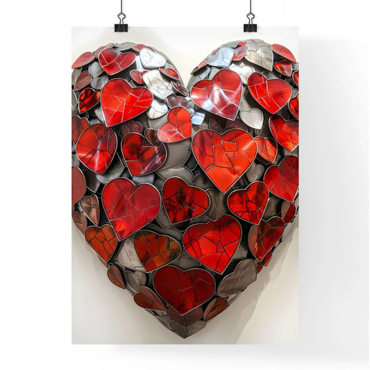 Laser Cut Metal Heart Art: Vibrant Red and White Heart Shape with Intricate Hearts Detail