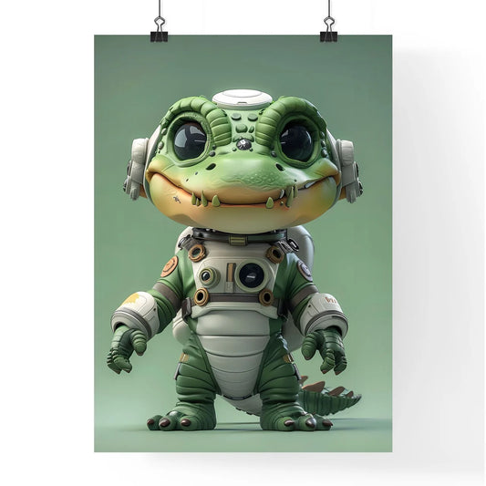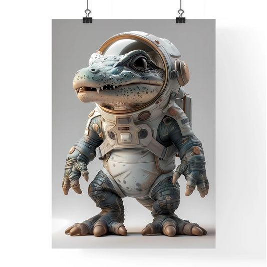 Astronaut Alligator: Anthropomorphic Reptile in Space Suit Standing on Two Legs, Isolate White Background, 3D Cartoon Character