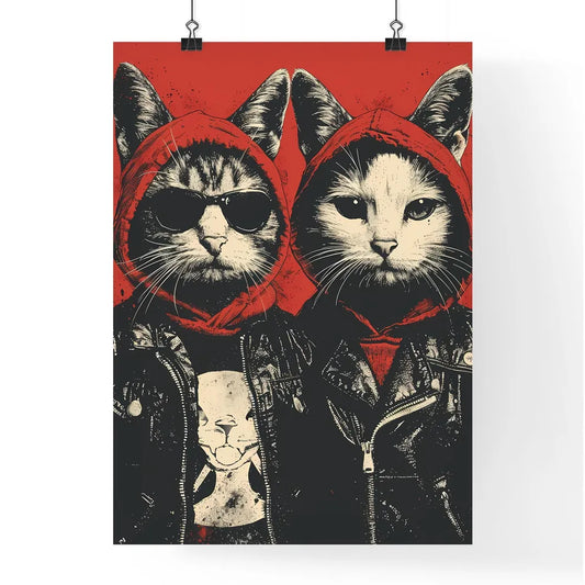 Kids wearing Halloween costumes - Art print of a couple of cats wearing hoodies and sunglasses