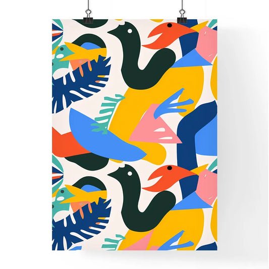 Vibrant Artistic Colorful Geometric Patterned Background for Kids Calendar with Bird and Leaf Motifs