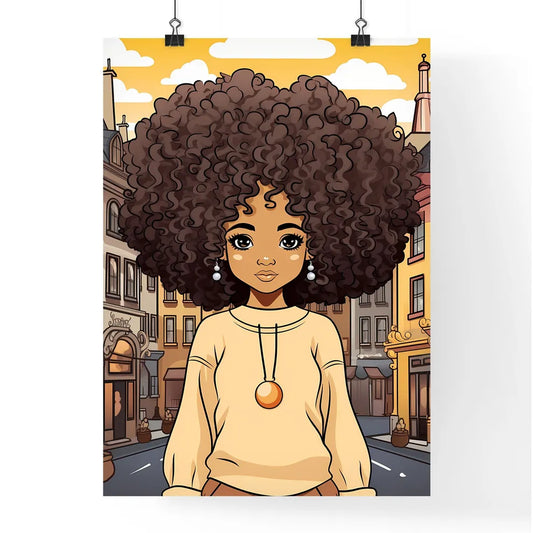 A Poster of cute afro girl - Cartoon Girl With Big Curly Hair And Large Earrings