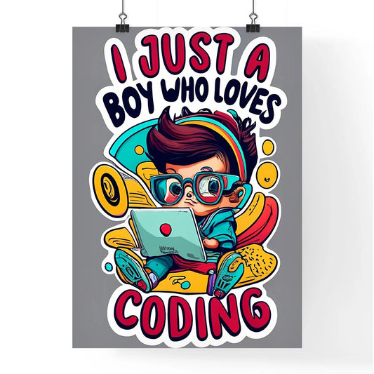 I Am Just A Boy Who Loves Coding - A Cartoon Of A Boy Using A Laptop Art Print