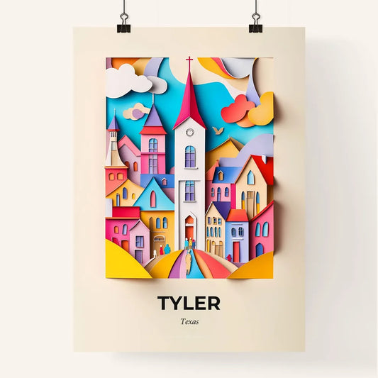 Vivid Tyler, Texas - a paper cut of a city with a clock