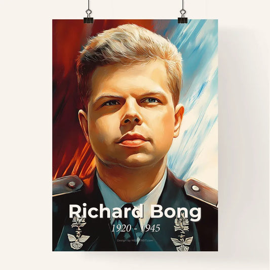 Portrait of Richard Bong, 1920 - 1945. Impressionistic painting of a man in a uniform.