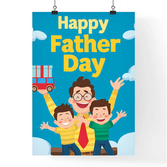 Fathers Day poster,warming feeling,Touching,with text : Happy Father's Day - Art print of a man and two boys holding up their hands