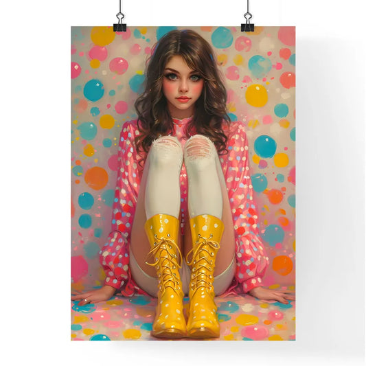 American pin up, pin up girls - Art print of a woman sitting on a colorful background