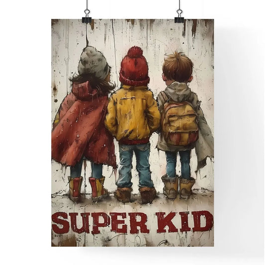Cute cartoon of Child-friendly superhero - Art print of a group of children standing together