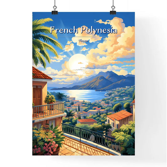 On the roofs of French Polynesia, France - Art print of a painting of a house overlooking a body of water and mountains