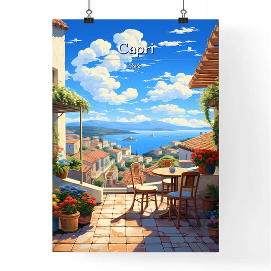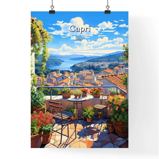 On the roofs of Capri, Italy - Art print of a balcony with a view of a city and a body of water