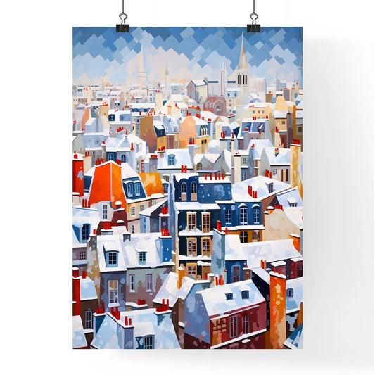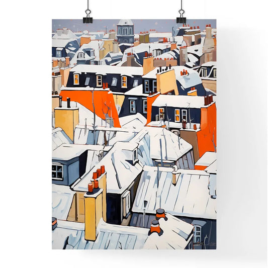 A Poster of snowy urban roofs of paris - A Snow Covered Rooftops Of A City
