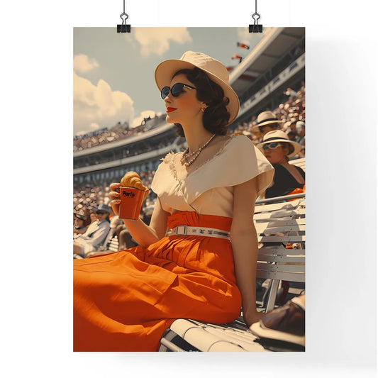 A Poster of Paris the French Olympic Games - A Woman In A Hat And Sunglasses Holding A Cup Of Food