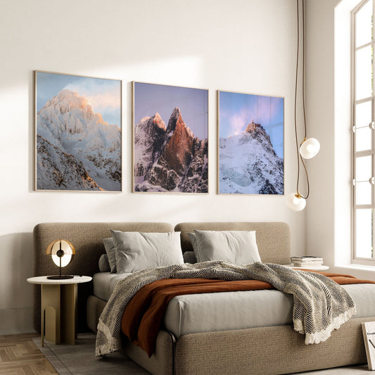 Aiguille du Midi Sunset Photography Prints - Mountain Triptych Wall Art