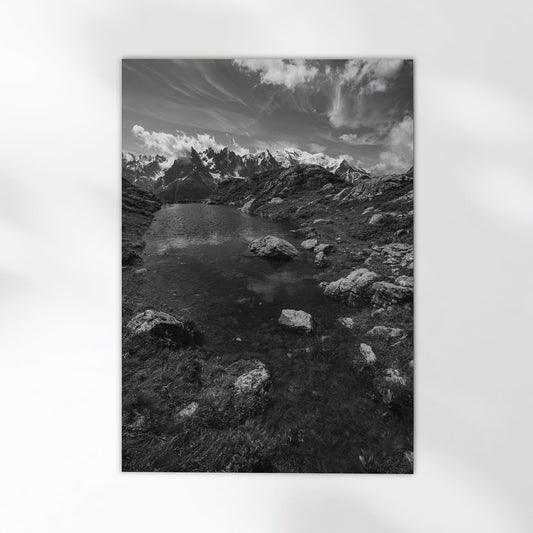 Lac de la Flégère Chamonix Wall Art – Black & White Alpine Photography Print