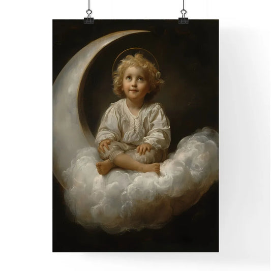 Baroque Cherubim Cloud Painting: Child Sitting on Cloud, Art, Canvas, Oil, Vibrant, Artistic