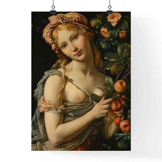 Renaissance Painting Eve Apple Flowers Art Artwork Woman