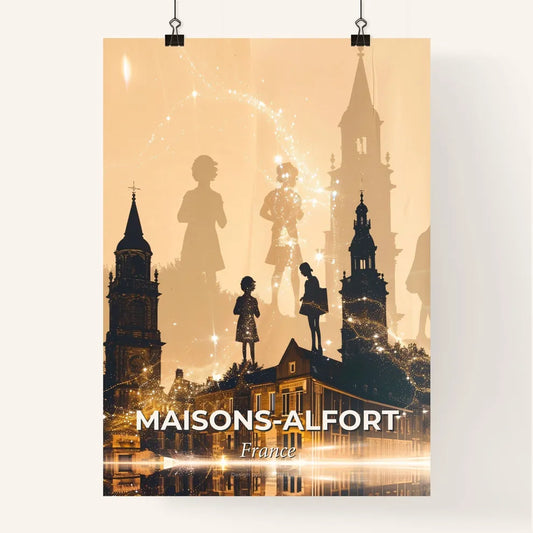 Maisons-Alfort Skyline Silhouette Nightfall Poster Art - A group of people standing on top of a building