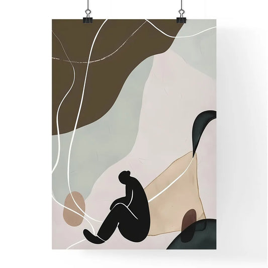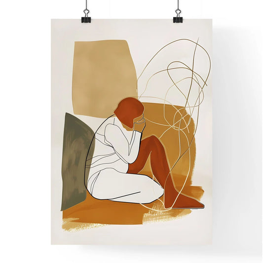 Line Art Papier Couché Art Poster: Muted Gouache Minimalistic Painting of Woman on Floor