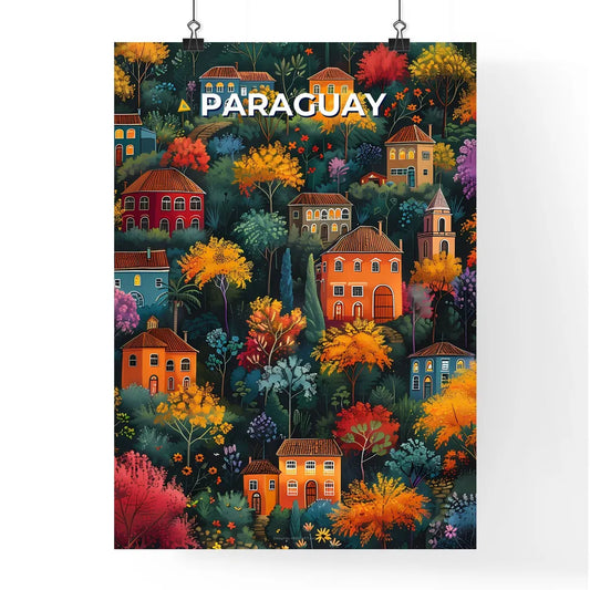 Colorful Painting of Traditional Paraguay Landscape with Houses and Trees, South America Art