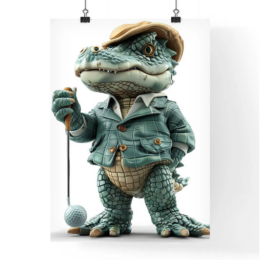 Anthropomorphic Alligator Golfer Cartoon, Isolate White Background, Full Body, 3D Character, Slight Aliasing, Vibrant Painting, Art, Standing Two Legs