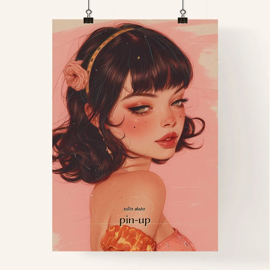 roller skates, pin-up, A Poster of a woman with a flower in her hair