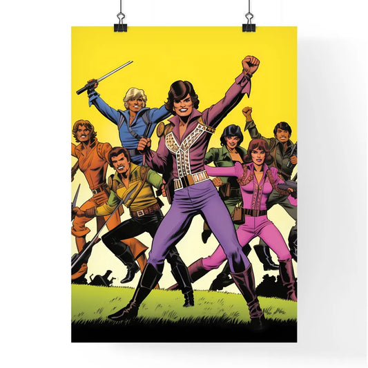 Vintage motorcycle racing poster - Art print of a group of people holding guns