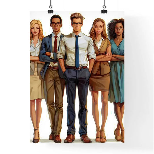 Portrait of the seven archangels Michael, Gabriel, Raphael, Uriel, Jeremiel, Azrael and Zadkiel, united, in vibrant colors - Art print of a cartoon character holding a clipboard