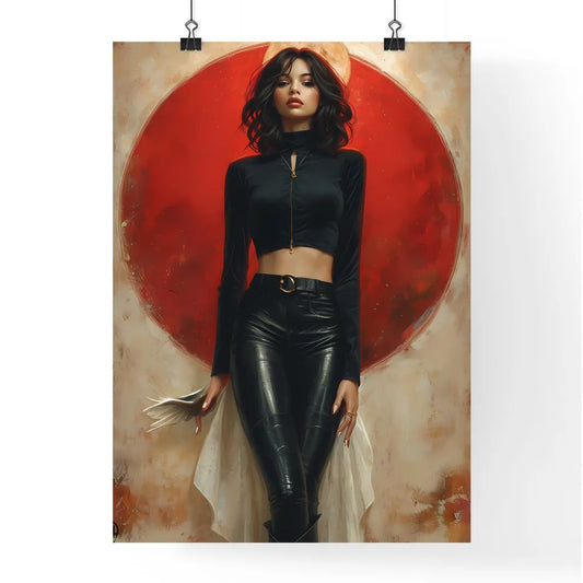 Uncommon pin up girl illustration, full body character, high resolution - Art print of a painting of a boat on a lake with trees and a sunset