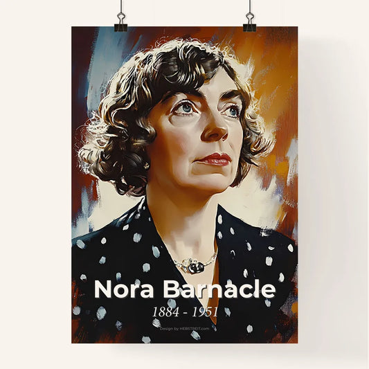 Portrait of Nora Barnacle, 1884 - 1951. Impressionistic painting of a woman in a polka dot shirt.