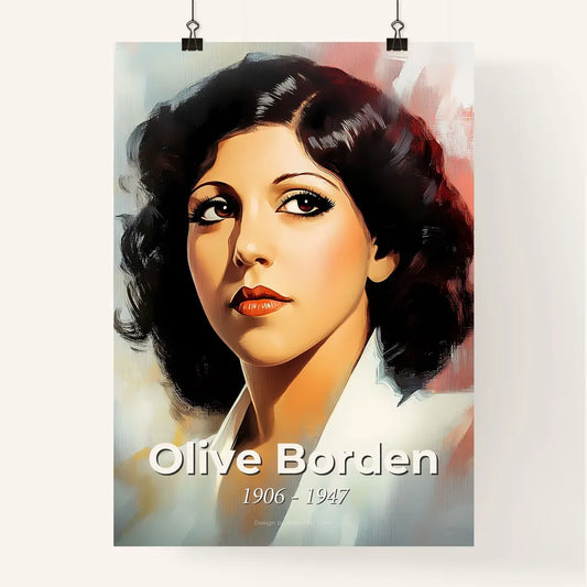 Portrait of Olive Borden, 1906 - 1947. Impressionistic painting of a woman with dark hair and red lipstick.