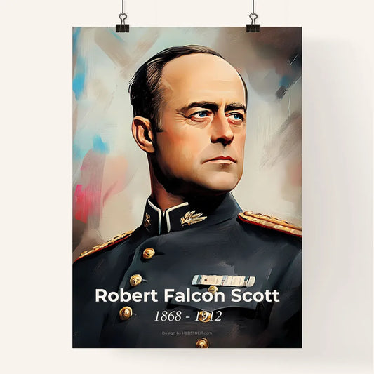 Portrait of Robert Falcon Scott, 1868 - 1912. Impressionistic painting of a man in a military uniform.