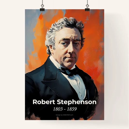 Portrait of Robert Stephenson, 1803 - 1859. Impressionistic painting of a man in a suit.
