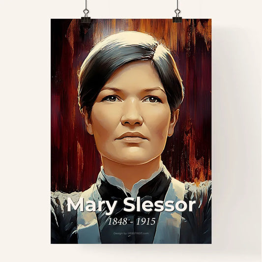 Portrait of Mary Slessor, 1848 - 1915. Impressionistic painting of a woman in a black shirt.