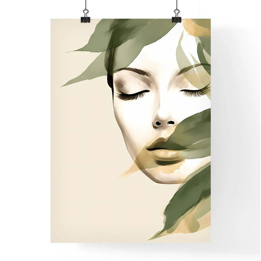 Boho - A Woman With Closed Eyes And Green Leaves Around Her Face