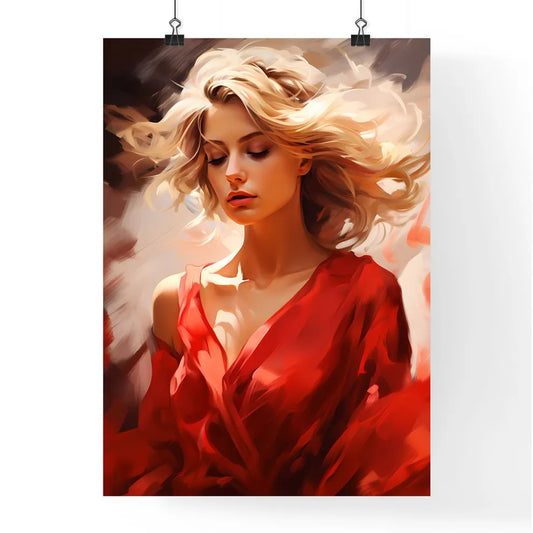 Woman With Blonde Hair Wearing A Red Shirt Art Print