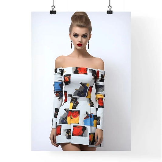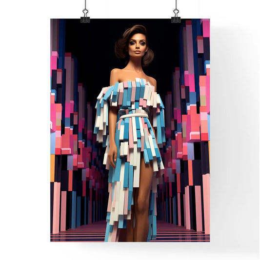 Woman Wearing A Dress Made Of Colorful Strips Art Print