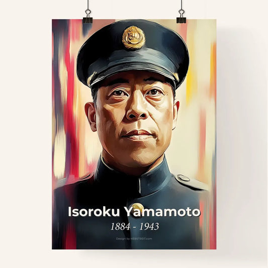 Portrait of Isoroku Yamamoto, 1884 - 1943. Impressionistic painting of a man in a uniform.