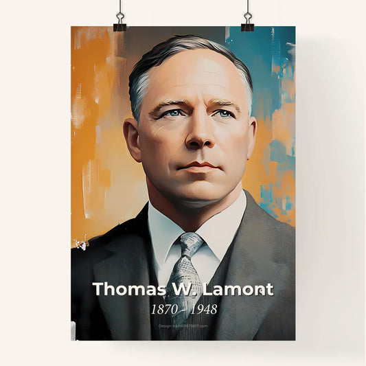 Portrait of Thomas W. Lamont, 1870 - 1948. Impressionistic painting of a man in a suit and tie.