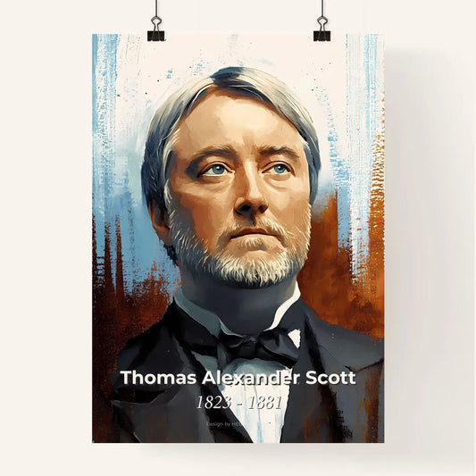 Portrait of Thomas Alexander Scott, 1823 - 1881. Impressionistic painting of a man in a suit.
